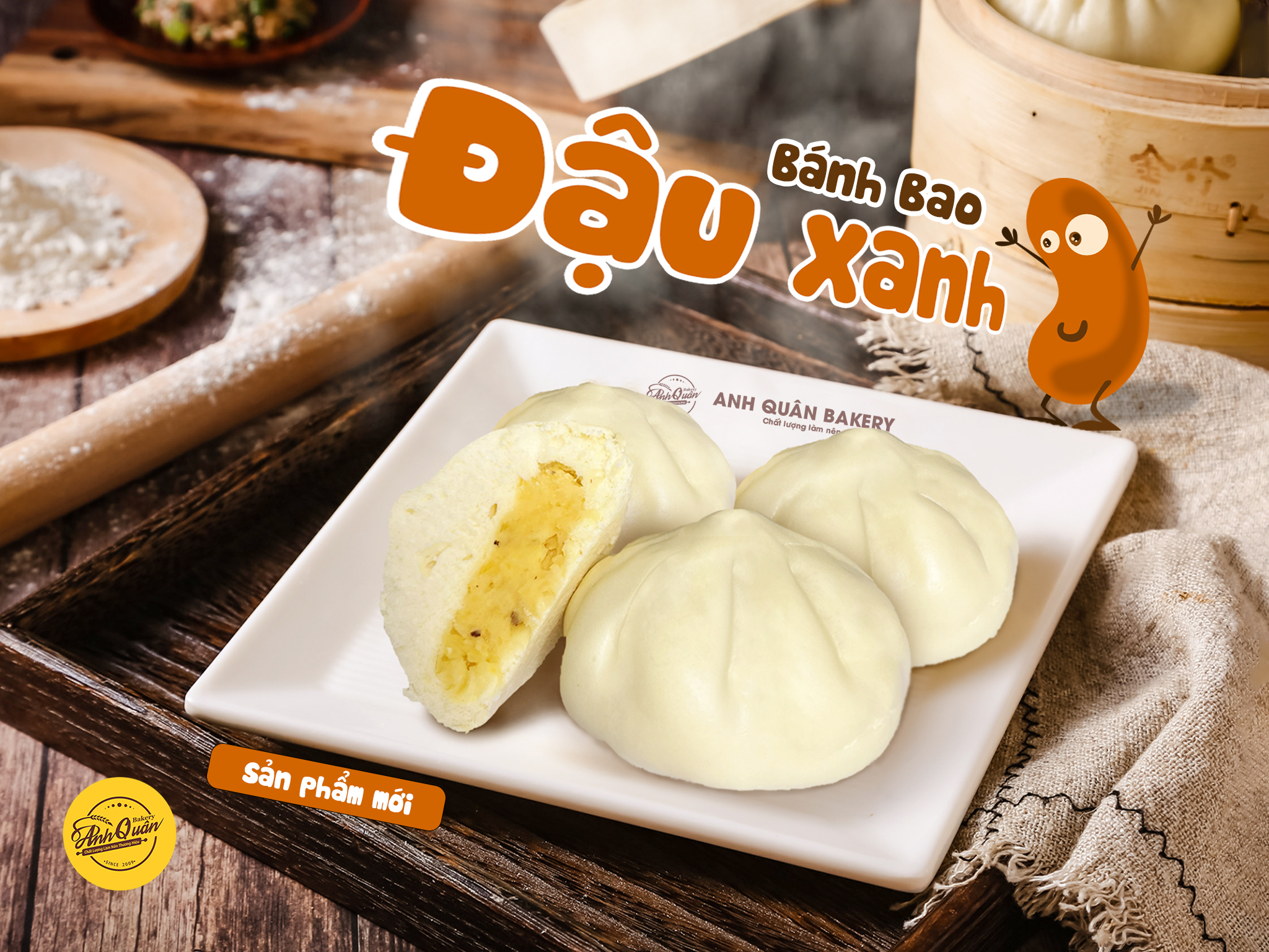 Bánh Bao Nhân Đậu Xanh mềm mịn, có vị ngọt ngọt, beo béo, thơm ngon đến khó cưỡng, có thể dùng món bánh này trong những ngày chay mà không hề có cảm giác bị ngán.