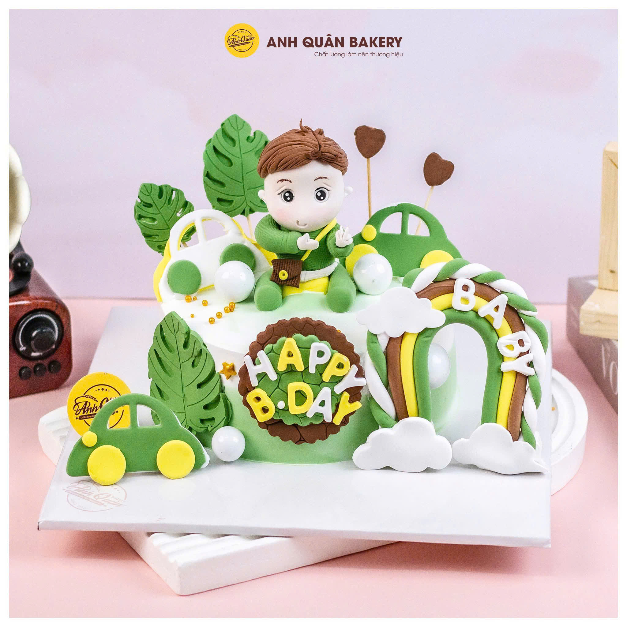 Bánh kem sinh nhật bé trai đất sét